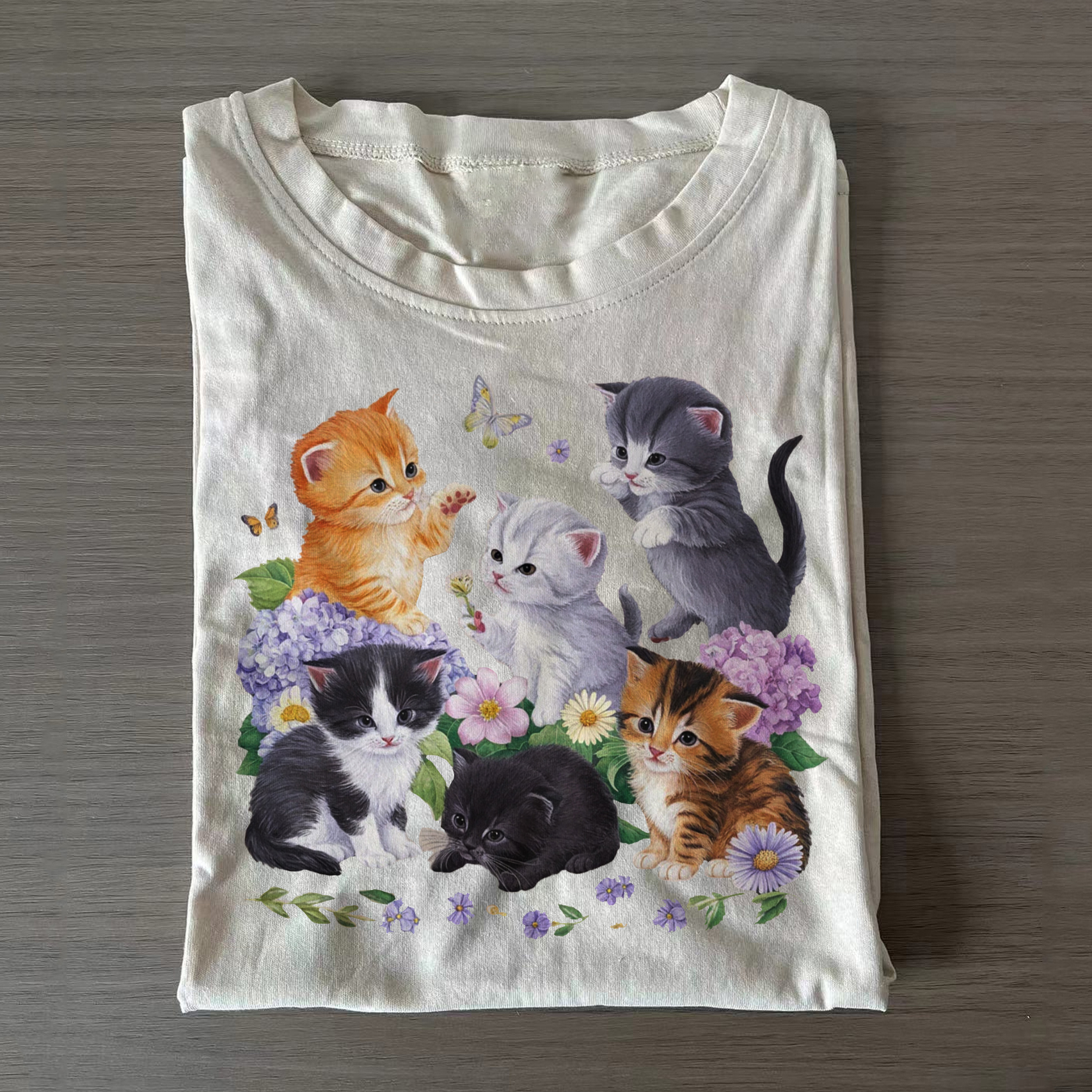Save $18.00Cute Cat & Butterfly Floral Graphic T-shirt$34.99 USD $52.99 USD -