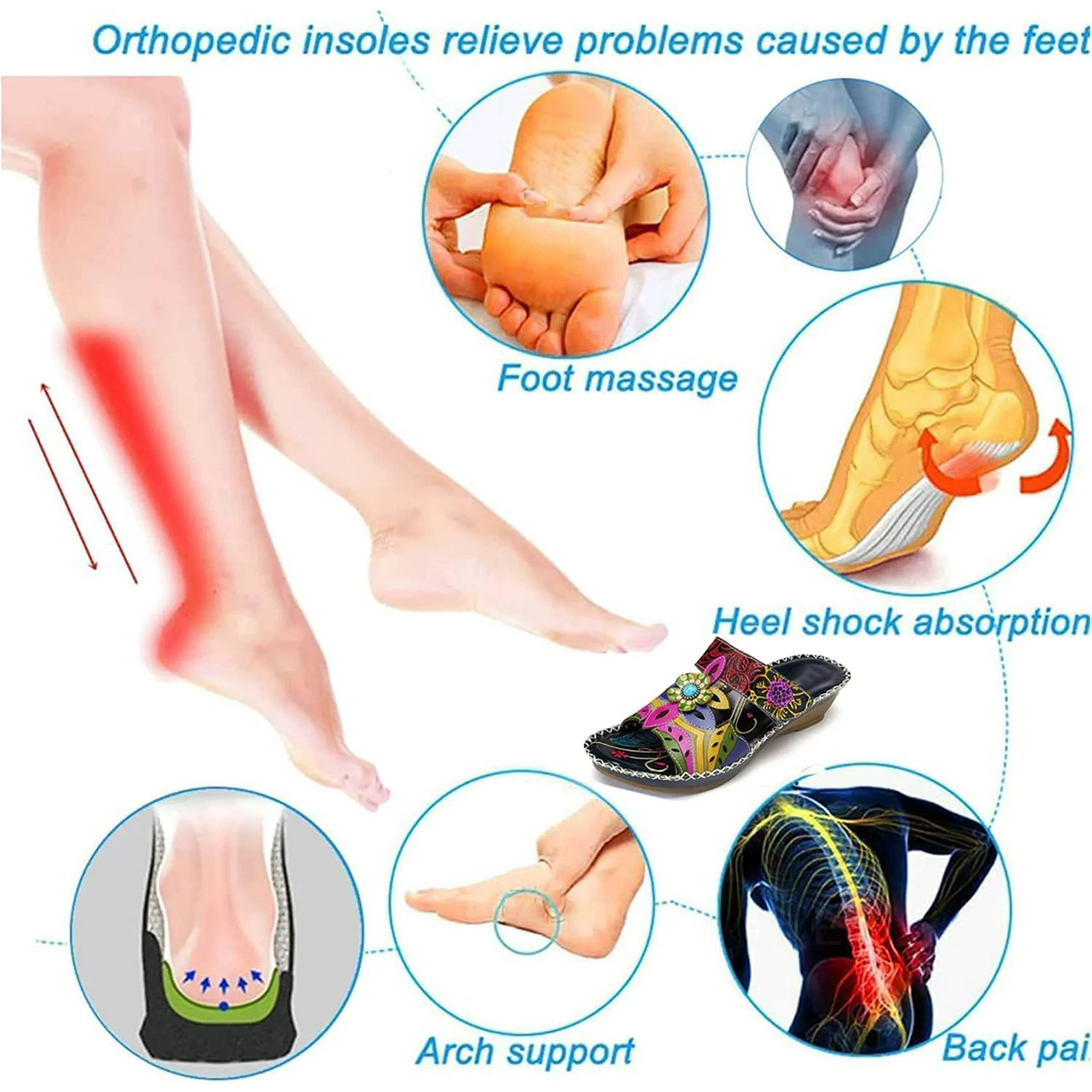 The Sandal corrects posture and eliminates muscle imbalances by balancing your feet at the perfect angle its original position to realign skeleton positioning.