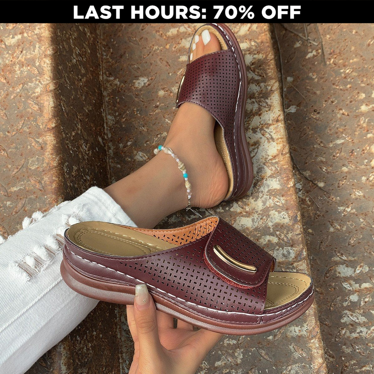 【Arch Support Design】- Wedges for women with arch support design perfectly fit the feet, are comfortable and not tired, and can be worn all day. Women's Wedges are easy to put on and take off.