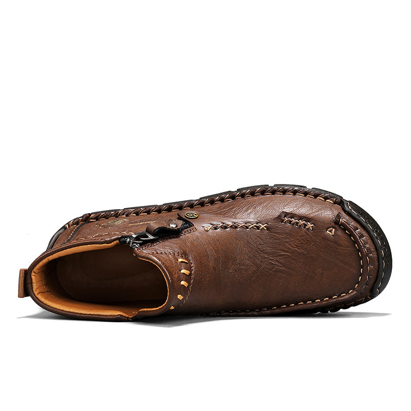 These men's casual leather shoes are the perfect combination of style and function. The classic design features a mid-cut ankle boot style with a look inspired by moccasins. The stylish and simple silhouette makes these shoes easy to pair with a variety of outfits, whether it's jeans, chinos or suits. Whether you're going for a casual day or a more formal occasion, these shoes will add a touch of sophistication to your look.